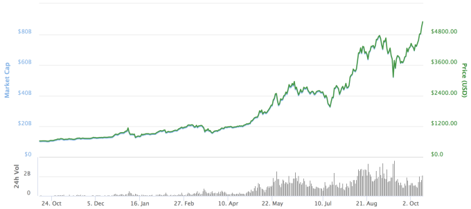 Është hera e parë që kriptobalenca ka shtënë me besim $ 5.000. Disa burime thanë që çmimi arriti 5,000 dollarë për disa minuta në muajin shtator, por vetëm zgjati rreth 10 minuta, duke bërë sot lëvizjen e parë të qëndrueshme që kalonte pikën historike.